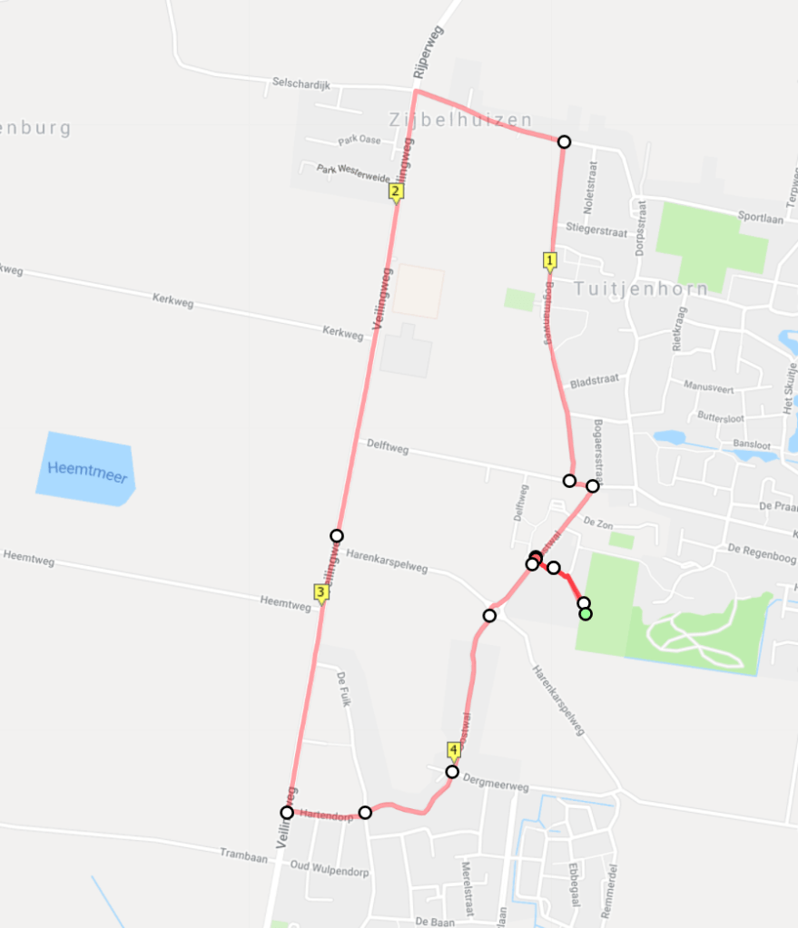 De 5 km start op de baan van AV Nova. Na 100m verlaat je de baan en volg je de weg door Tuitjenhorn, en door Warmenhuizen voor één ronde. Finish is ook op de baan van AV Nova.